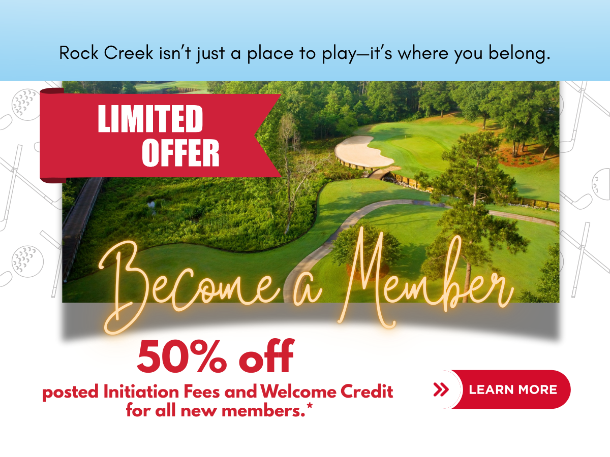 Located off the Eastern Shore of Mobile Bay in Fairhope County, Rock Creek Golf Club offers one of the best Southern Alabama golf courses. Designed by renowned architect and Southern favorite, Earl Stone, Rock Creek provides a playable and enjoyable layout for golfers of all skill levels. In addition, Rock Creek is a full-service golf club complete with an award-winning restaurant and array of social activities and events designed for the entire family. We are just a short drive away from Mobile, Biloxi, New Orleans, and Gulf Shores. We invite you to peruse our site for more information.