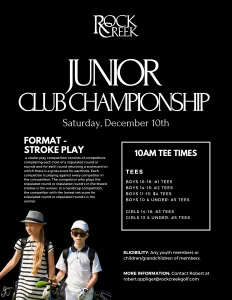 Do you have a junior golfer? Register them for our Junior Club Championship today! Tee times start at 10 AM on Saturday, December 10th! We hope to see you there! • • • • • Contact Robert for more information [email protected]