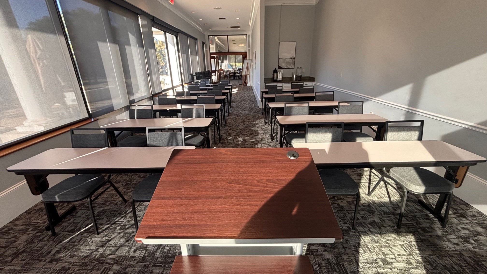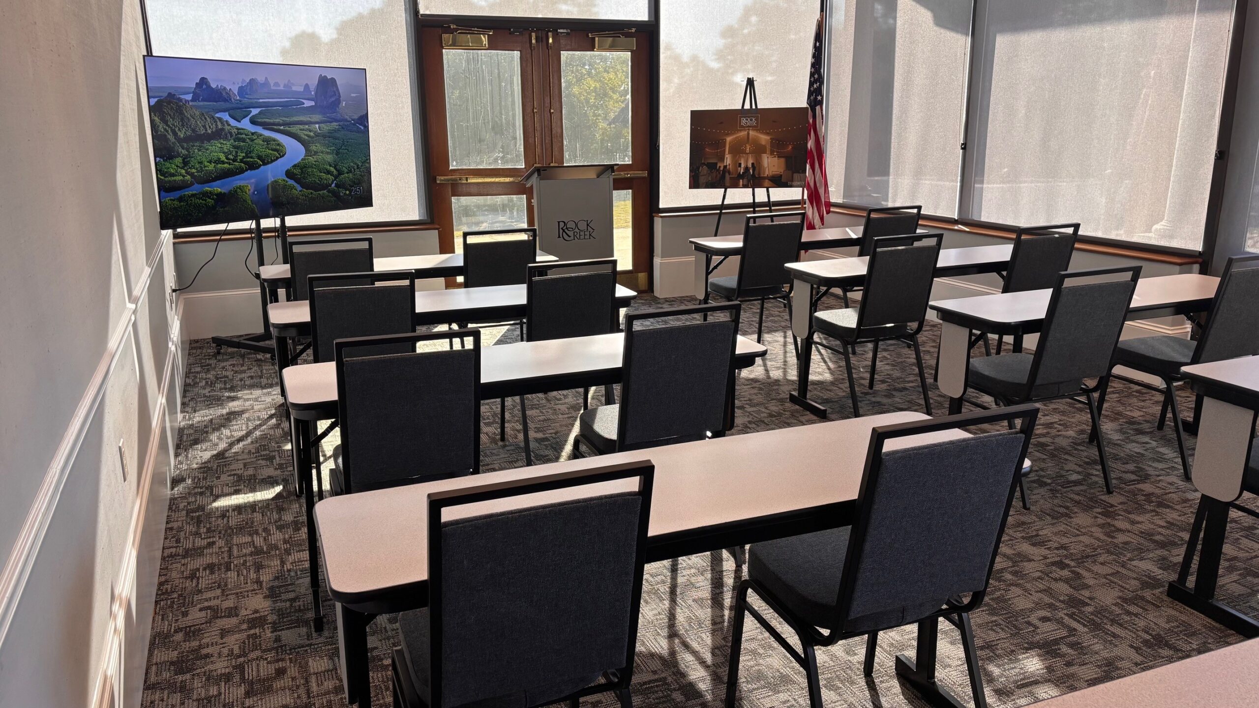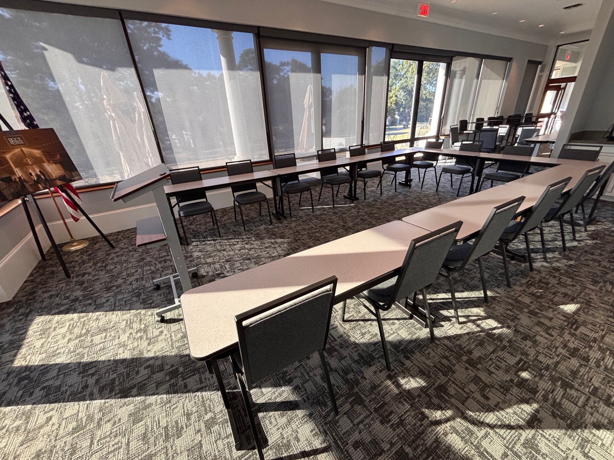 The flexible setup comfortably accommodates up to 24 guests in a classroom style, providing a casual atmosphere that inspires focus. Complete with full catering and the personal service you expect, this venue offers superior flexibility and exceptional value for gatherings of all kinds.